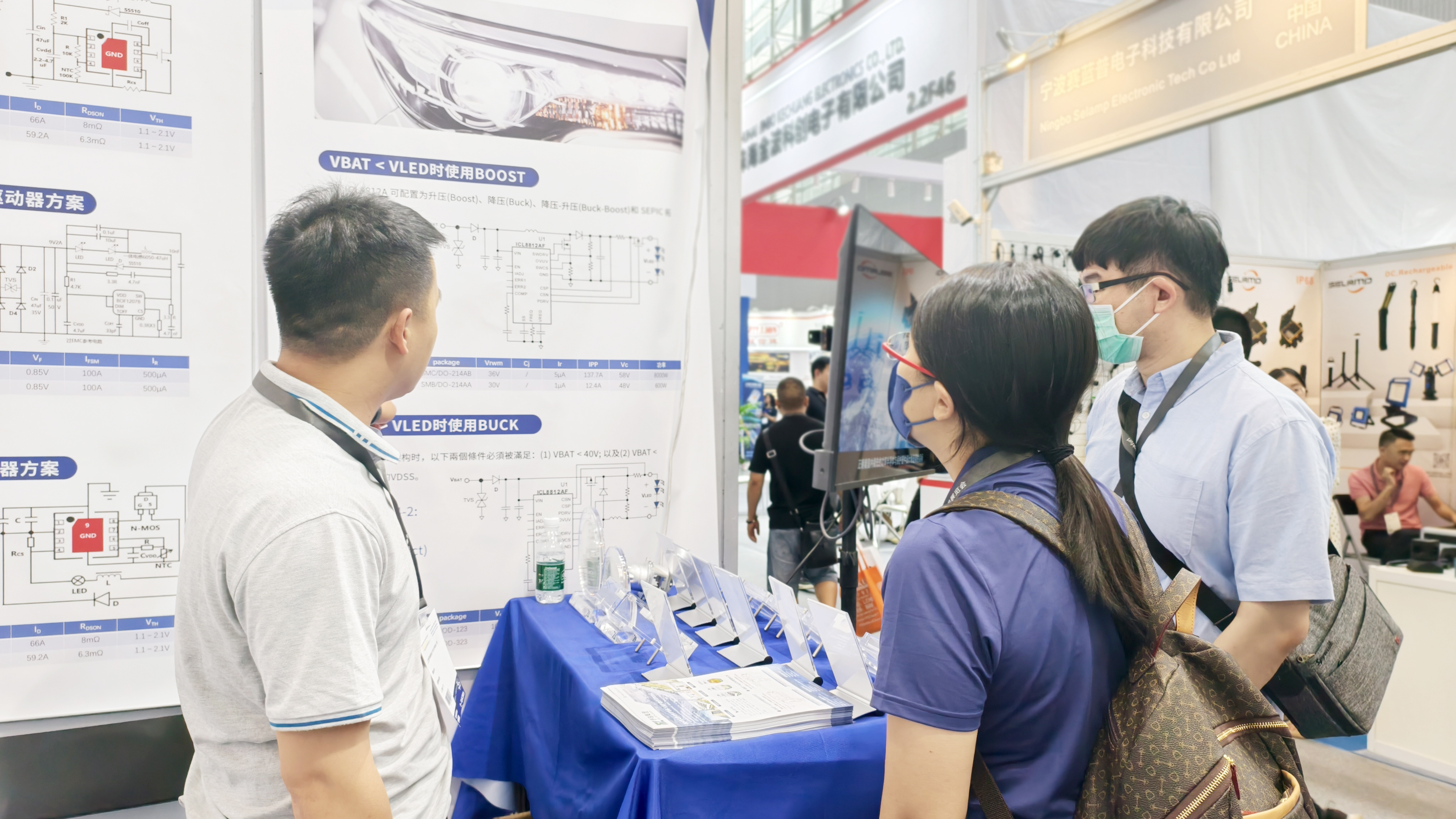 我们在2.2馆的F51展位,展示了最新的照明产品应用方案。这些方案涵盖了车灯照明、节能环保等设计,充分展现了我们在技术创新和产品研发方面的领先实力。